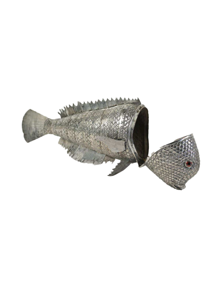 Rare and exceptional fish in foreign silver, probably Spanish, entirely articulated in its natural state, resting on 4 fins. The boxed object opens at the level of the head and the mouth.