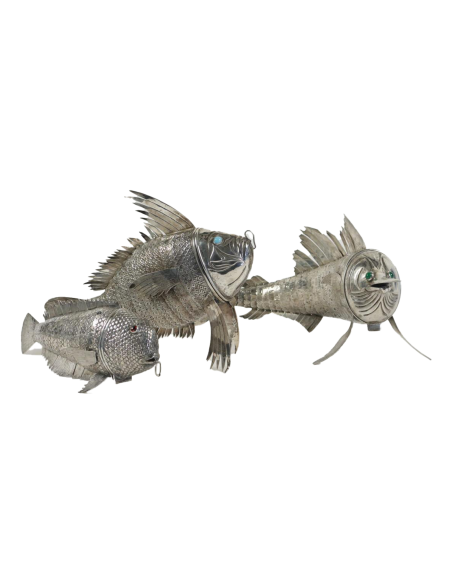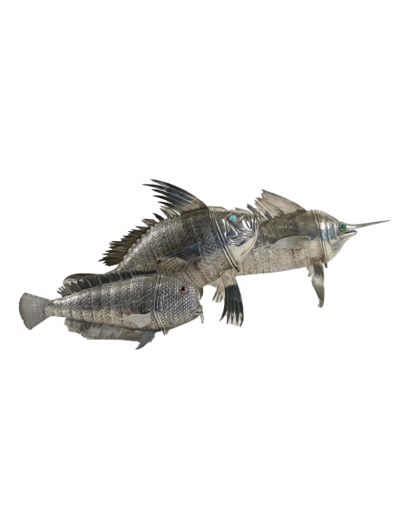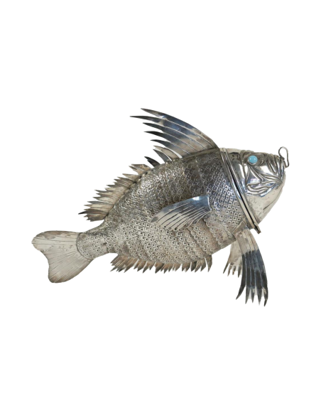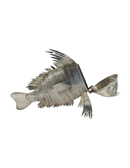 Rare and exceptional fish in foreign silver, probably Spanish Fully articulated natural resting on 4 fins.