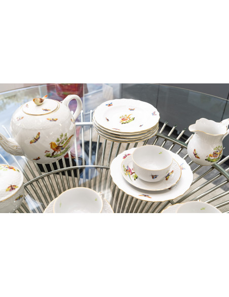 Porcelain service decorated with birds and butterflies, hand painted and gilded, including: