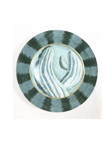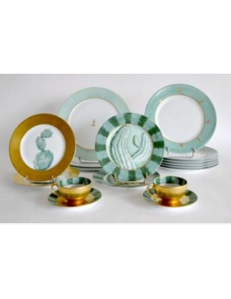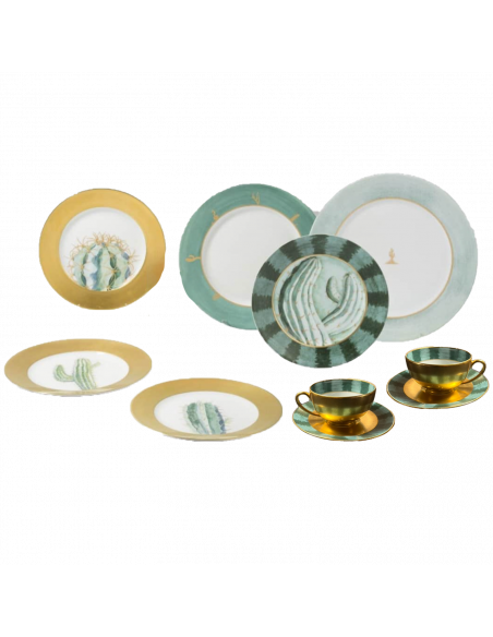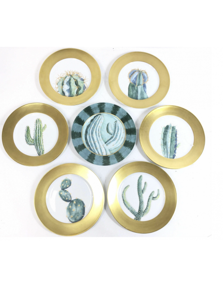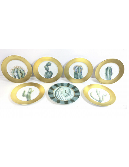 Daum and Limoges. Porcelain, "Cactus" decoration Proofs in polychrome enamelled porcelain and gilded with fine gold.