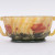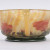 on a yellow and white filigree background with inclusions of pink intercalary powders