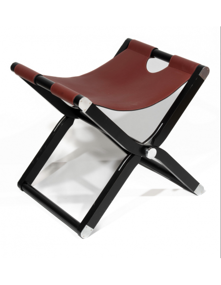 X shape in ebonized maple, chromed metal and red Clémence bull leather H.