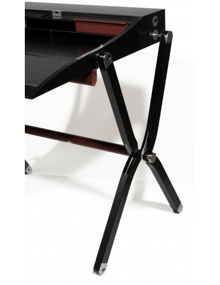 rectangular in shape, ebonized maple, chromed metal and red Clémence bull leather H.