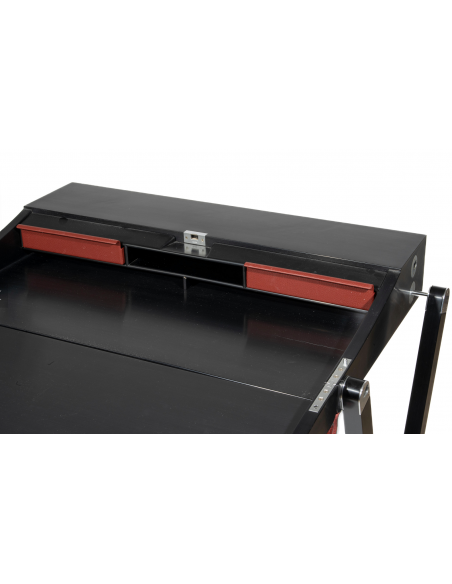 rectangular in shape, ebonized maple, chromed metal and red Clémence bull leather H.