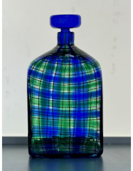 In 1969, the year when everything seemed possible, Christian Dior commissioned Ercole Barovier to develop, design and produce a series of bottles with stoppers. Inspired by Scottish woven fabrics, Barovier created the bottle, which was distributed exclusively by Christian Dior in Paris and all its branches. The bottle was produced by fusing polychrome glass rods arranged in tartan patterns. There were several colour variations, generally in shades of blue, green and red in a mass of clear glass.