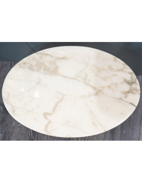 Eero SAARINEN (1910-1961), Edition Knoll : Oval pedestal table in Calacatta oro marble, Aluminium base covered with white Rilsan.