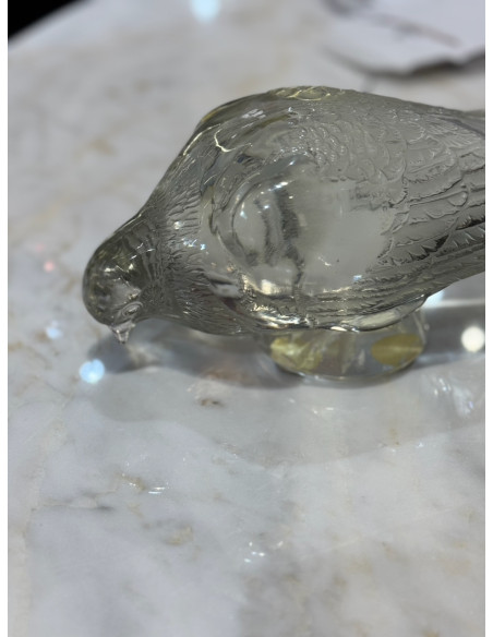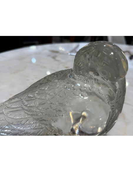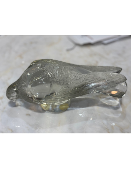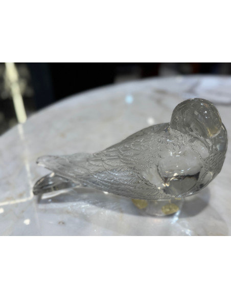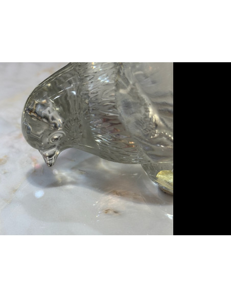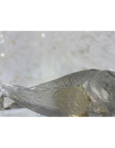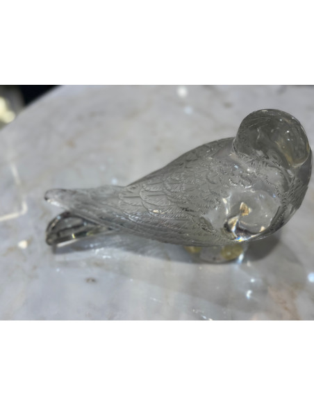 decorative motif clear and frosted crystal representation of a pigeon with beak down and body parallel to the ground model 1206 created in 1932, circa signed.
