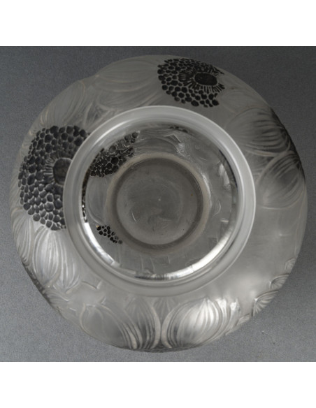 Dahlias” vase in pressed molded white glass with black enamel, created by René Lalique in 1923 and withdrawn from the catalog in 1937.