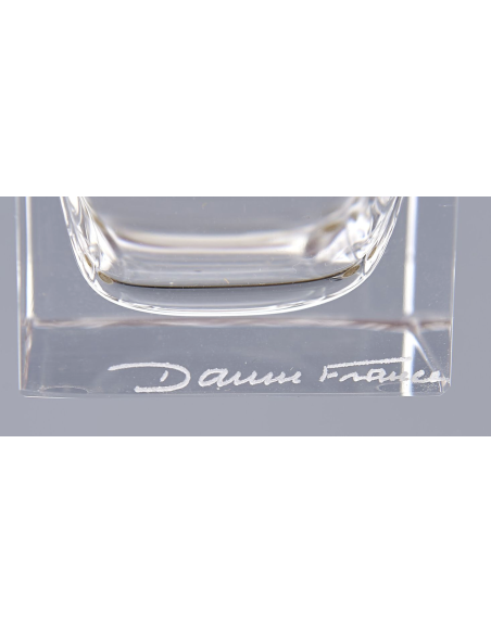 Crystal inkwell bottle with blue and violet polychrome pâte de verre nib.