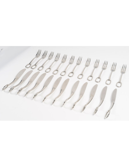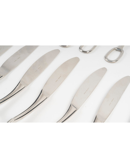 Original in both form and grip, the Grand Attelage service is inspired by the saddle key, a piece used in multi-horse carriages.