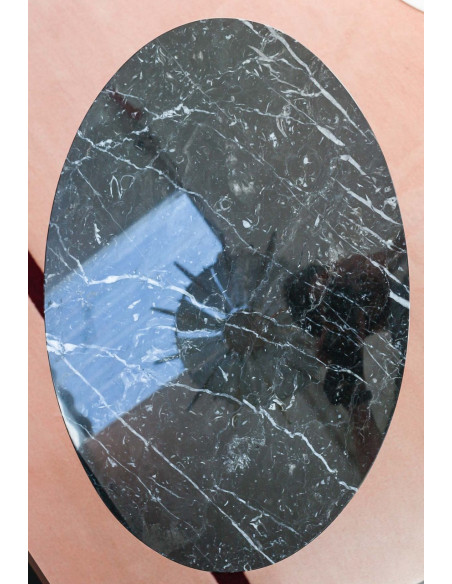 Eero SAARINEN (1910-1961), Edition Knoll Oval pedestal table in black morocco marble with aluminum base and white Rilsan