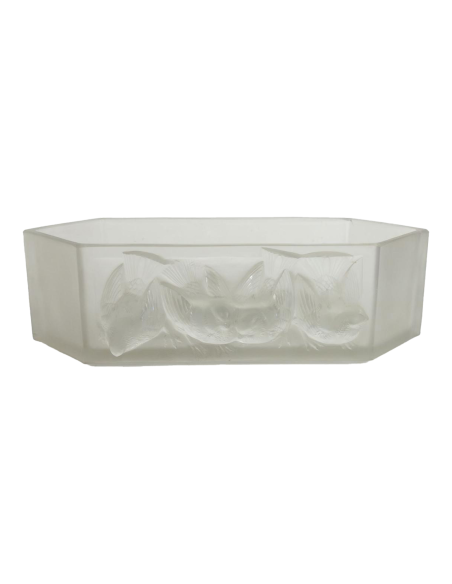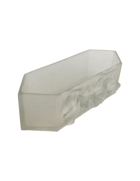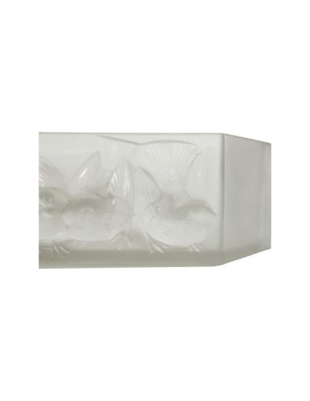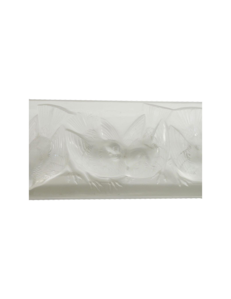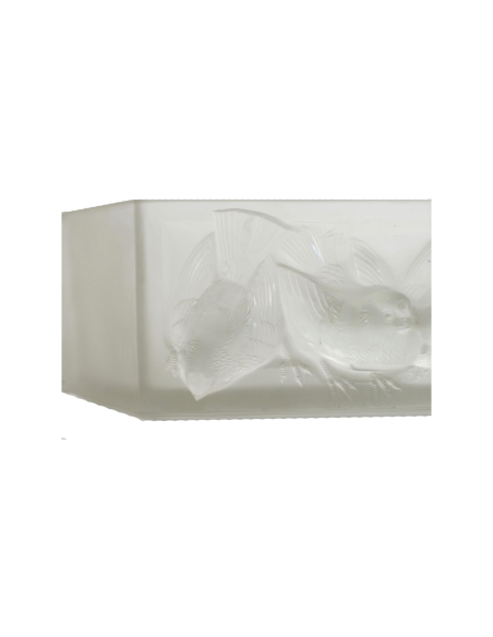 45 centimeters long by 13 centimeters high in glass with four Brussels birds, Model created on March 12, 1929, not continued after 1947.