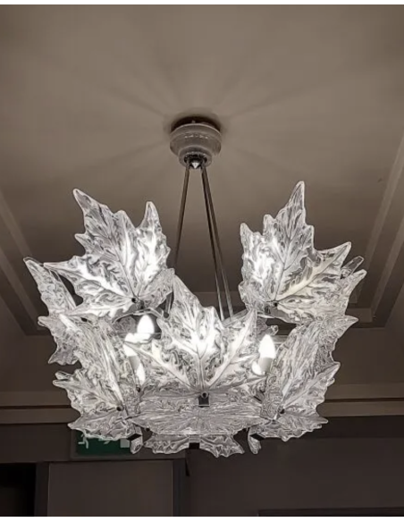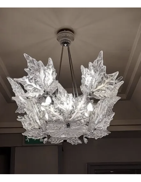 LALIQUE, chandelier model “Champs-Elysées” in cast crystal representing plane tree leaves.