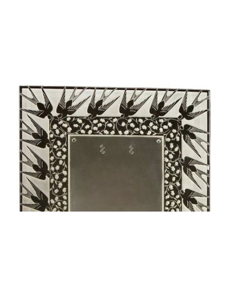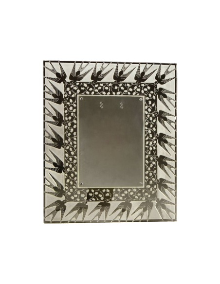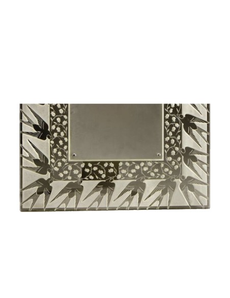 Rectangular frame with "Lily of the Valley and Swallows" in molded-pressed white glass with sandblasted decoration.