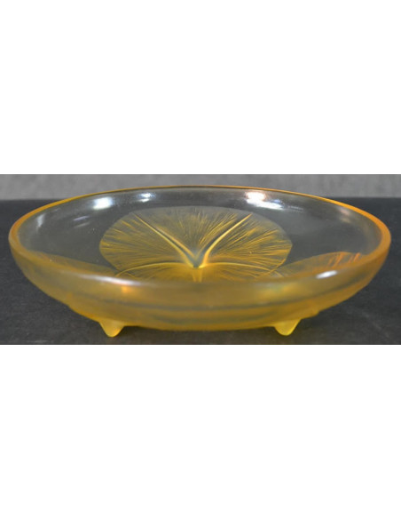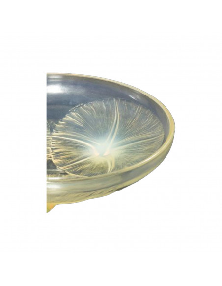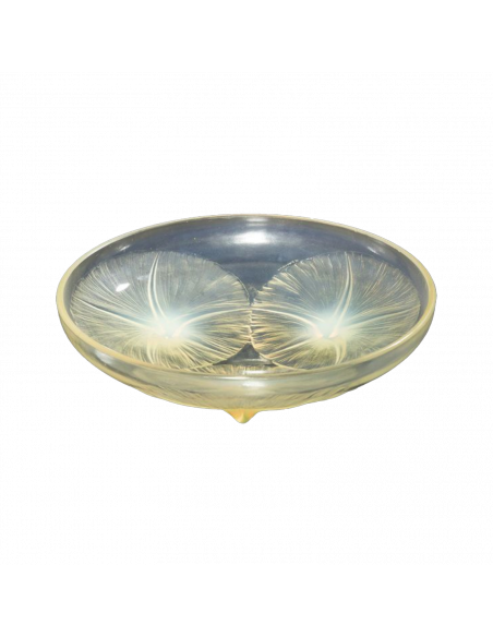 Tripod cup in molded-pressed opalescent glass, decorated with three morning glory.