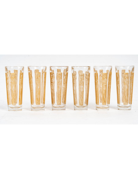 Each glass signed R. LALIQUE in cursive letters towards the base. Height : 10 cm