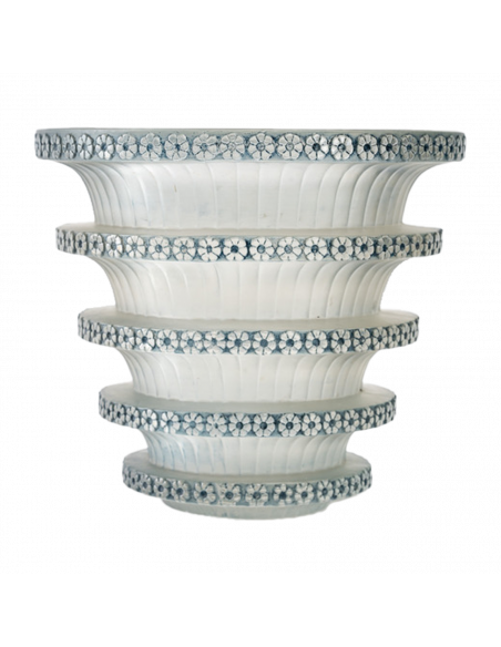"Chevreuse" vase in blue patinated white glass by René LALIQUE created in 1930.