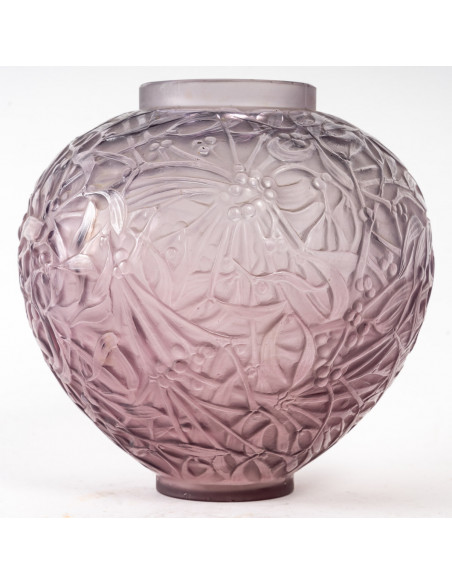 René LALIQUE vase GUI out of blown glass tinted amethyst, signed molded under the base,