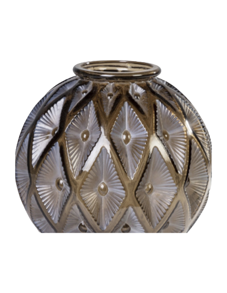 Majestic ball-shaped vase in partially frosted molded pressed glass in amber color