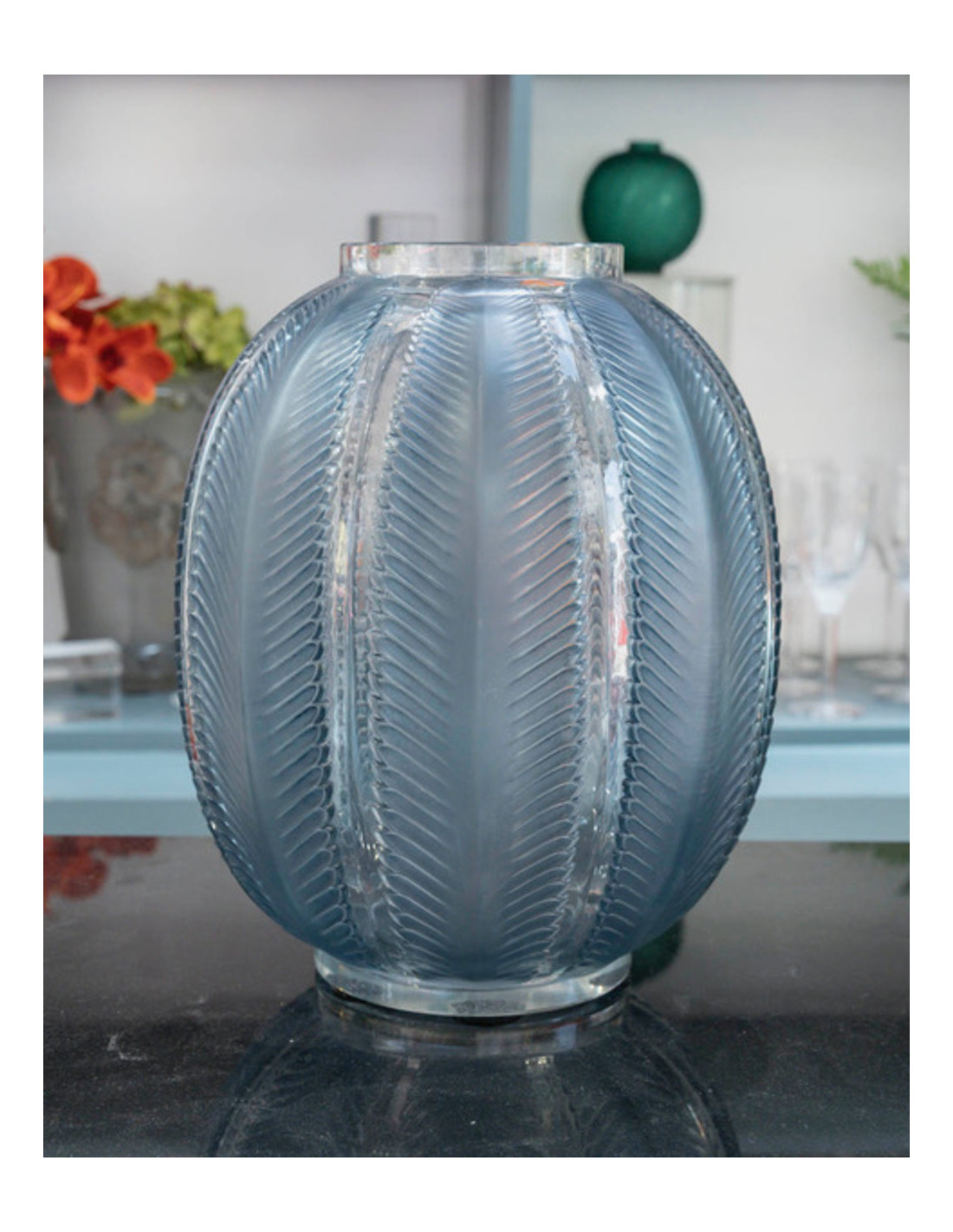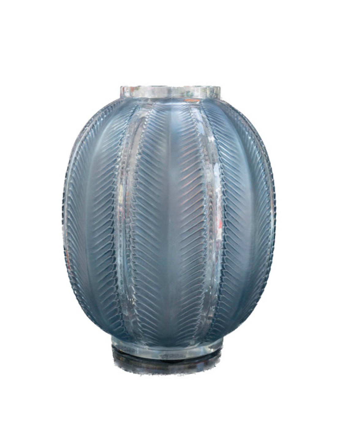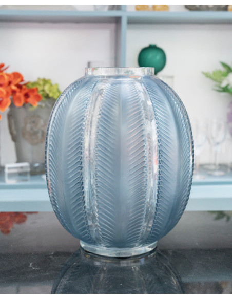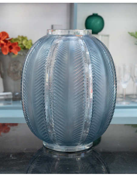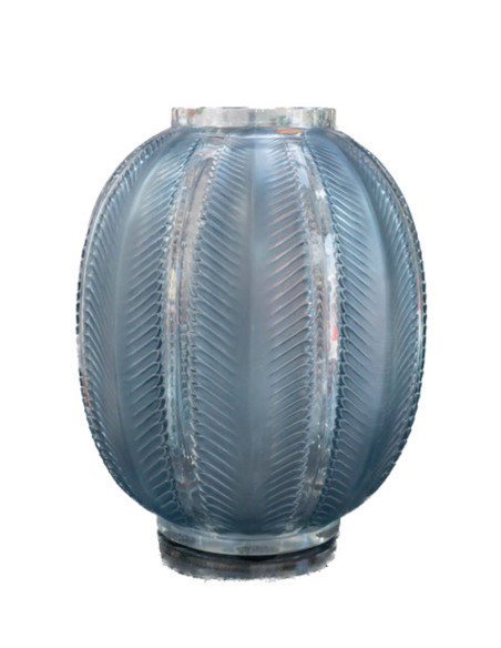 René Lalique - “Biskra” vase in opalescent glass enhanced with a blue patina.