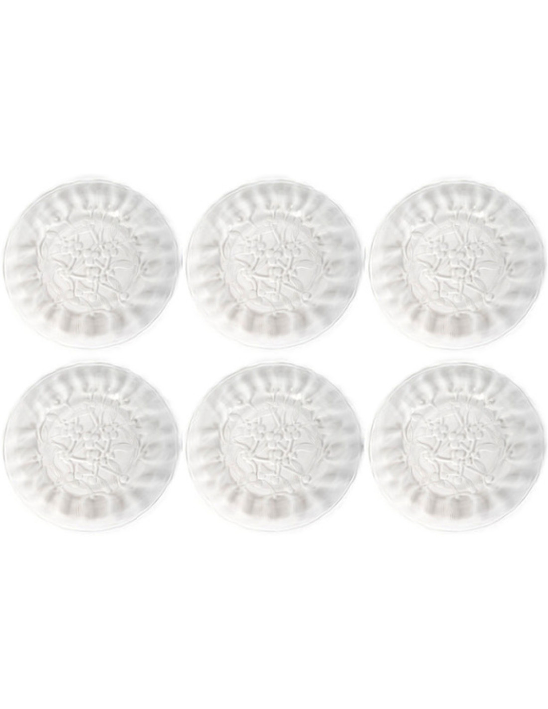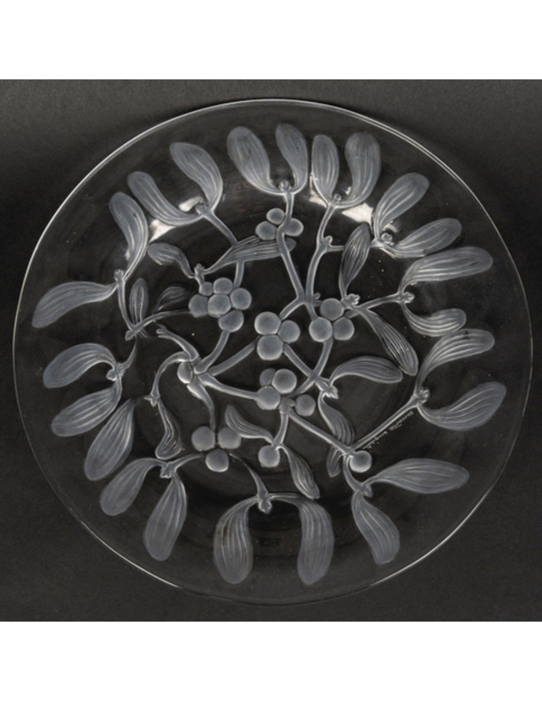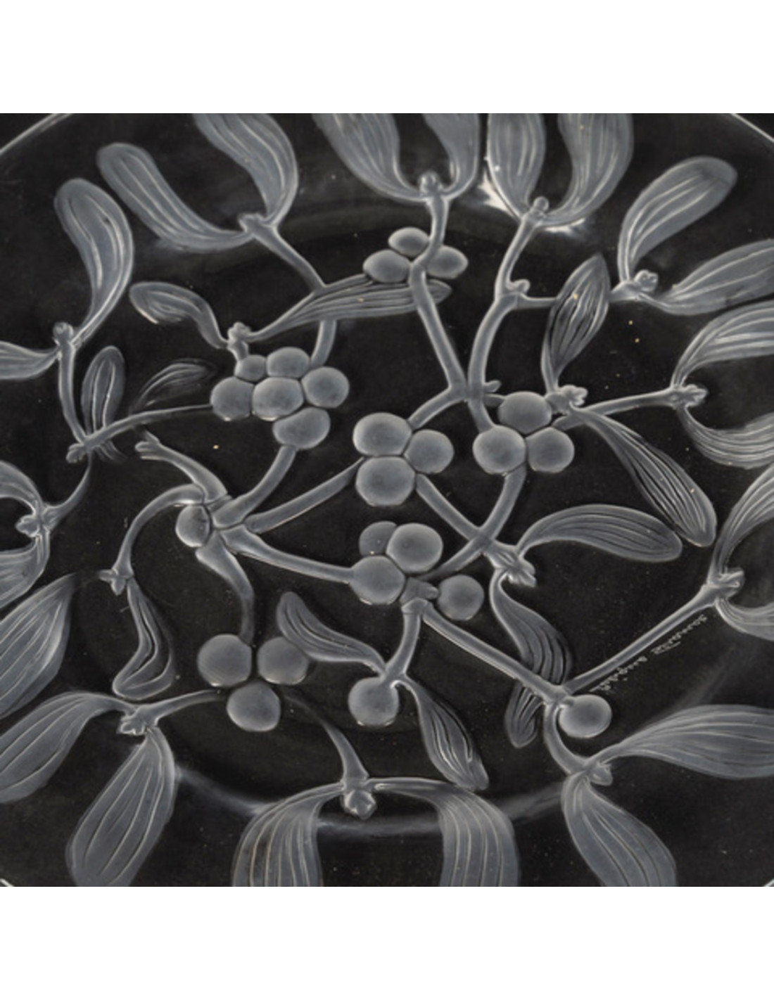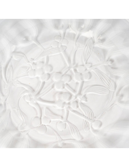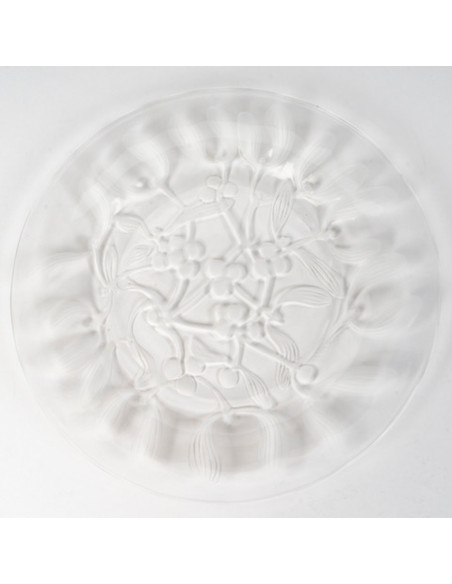 LALIQUE Crystal: 6 dessert plates decorated with mistletoe, made of pressed crystal with a partially satin finish, a slight variation on the model created in 1921.
