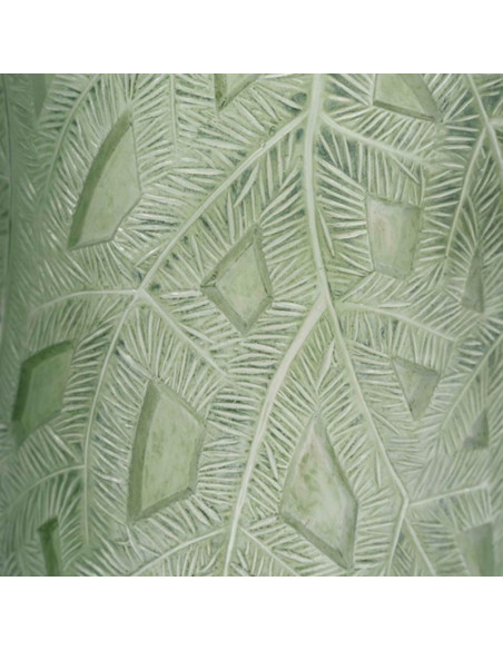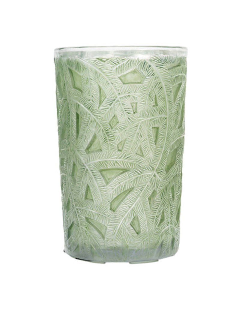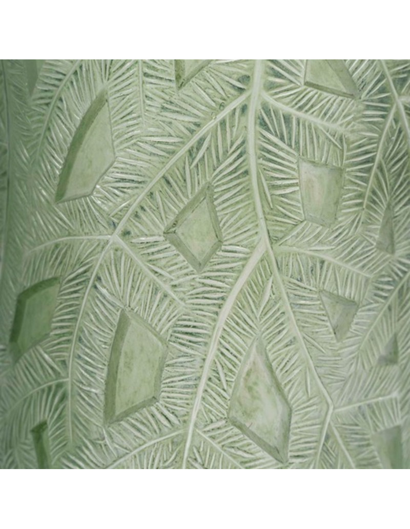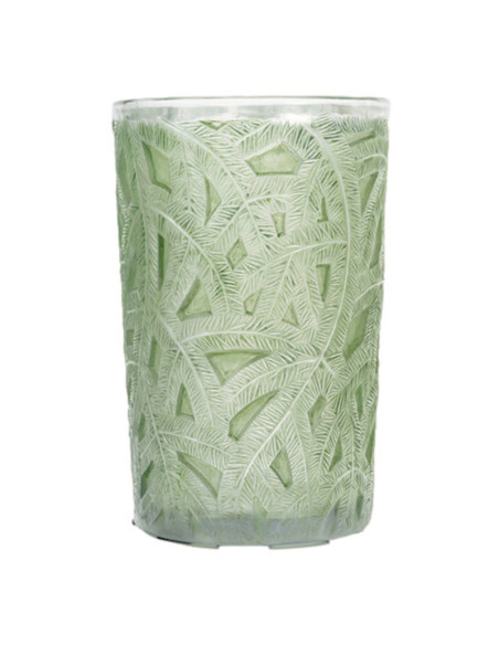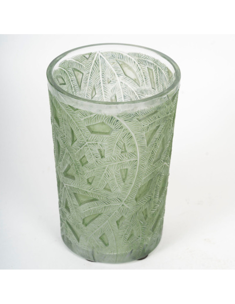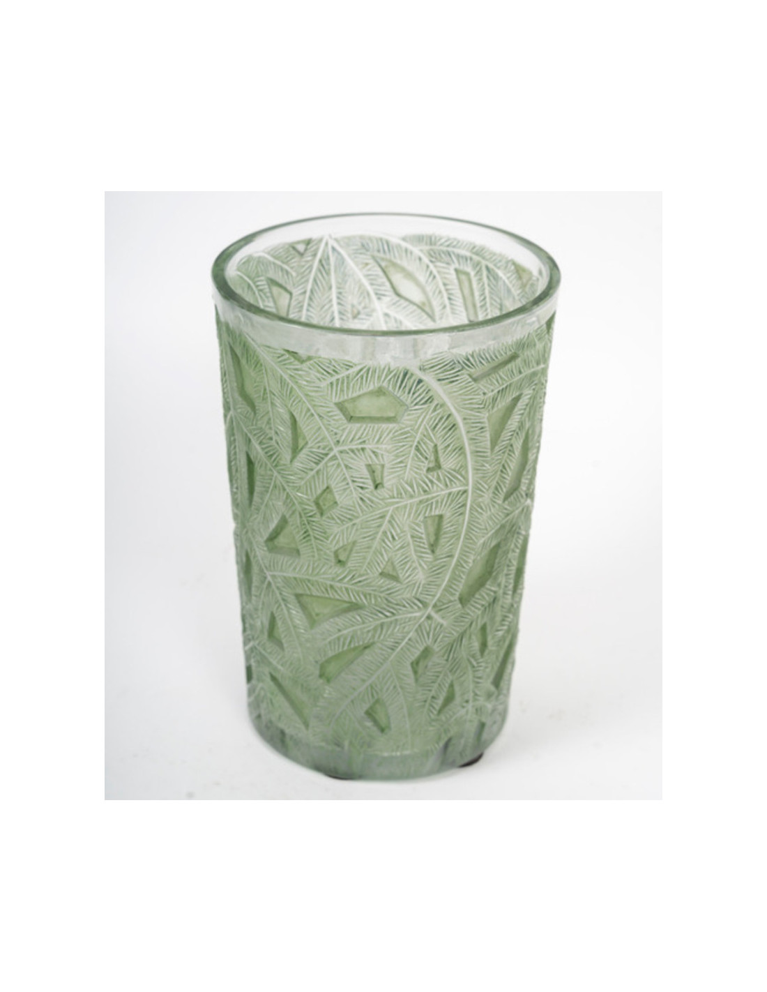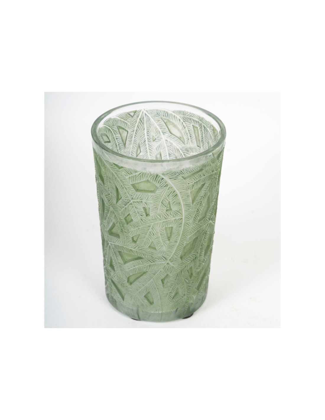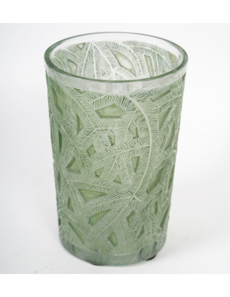 “Epicéa” vase in pressed molded white glass enhanced with a green patina.