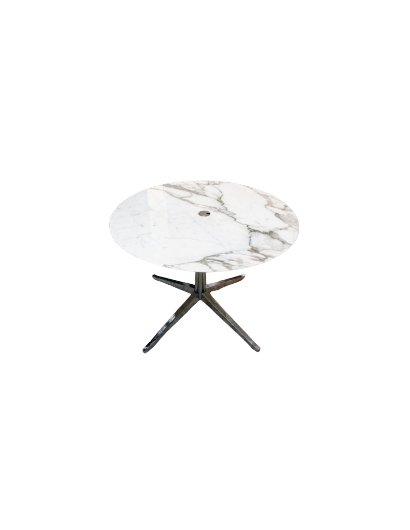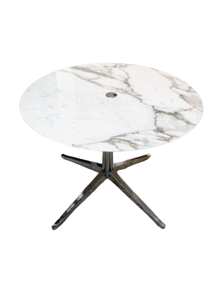 Florence Knoll - TABLE plateau rond ,marbre Calacatta oro verde ,base chromée
