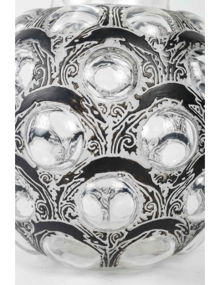 Vase "Antilopes" en verre moulé-pressé et émaillé noir Modèle créé en 1925.