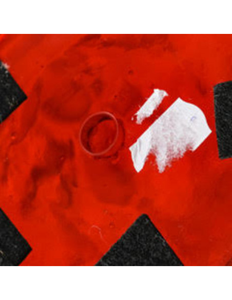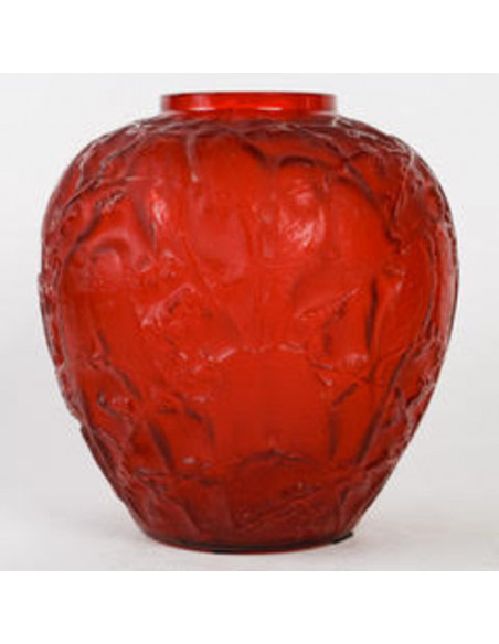 Vase "Perruches" en verre moulé-pressé teinté rouge .
