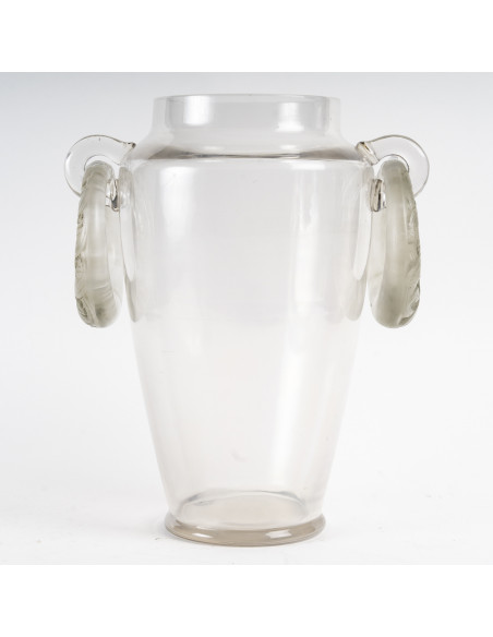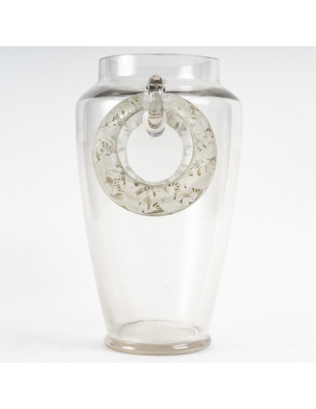 Motifs sur les anses de 2 anneaux à décor de lézards ,fixé par un élément en verre qui s’adapte sur l anneau pour le fermer, et permettant de le sortir des attaches collées à chaud du vase
