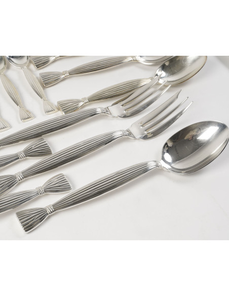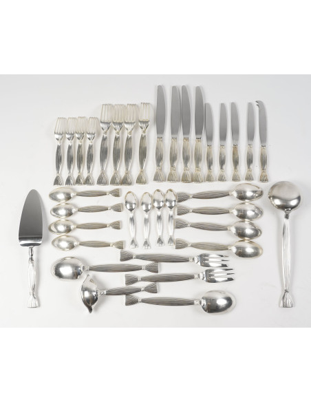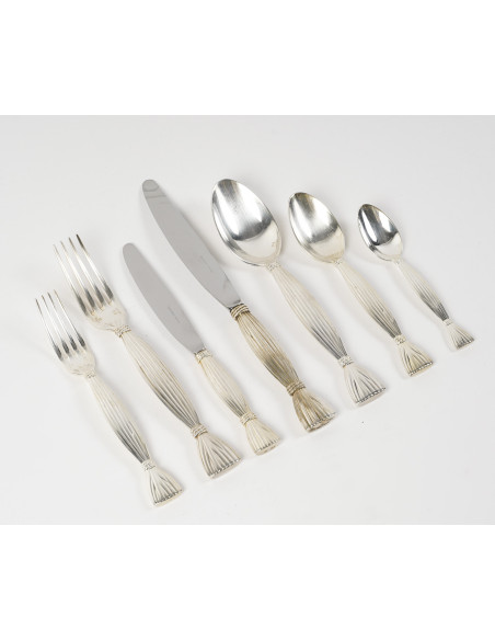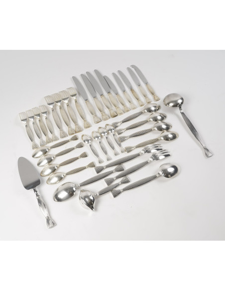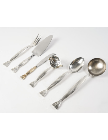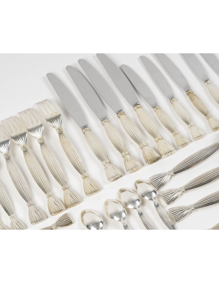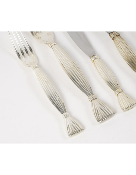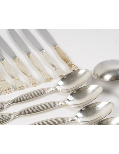 Cutlery and knife set, "Moisson" model, in silver and gilt metal, 113 pieces including :