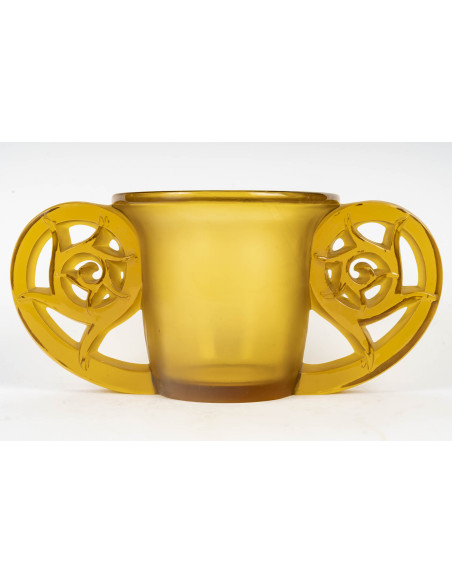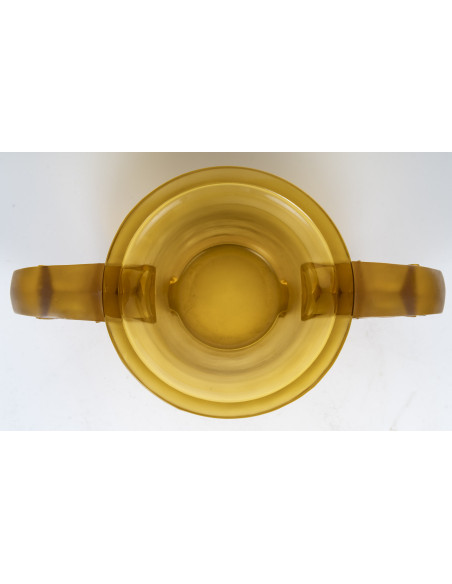 Vase "Pierrefonds" en verre moulé pressé teinté jaune / ambre