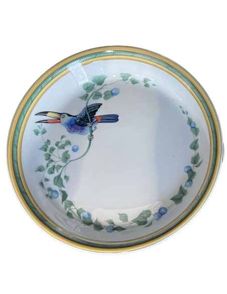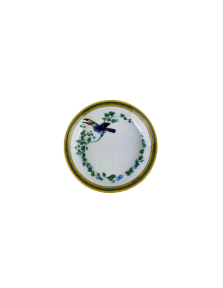Vide- poche circulaire en porcelaine blanche à décor polychrome.