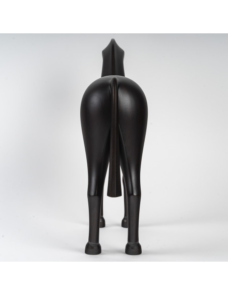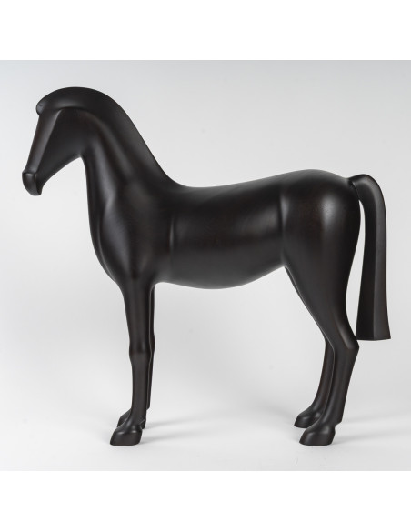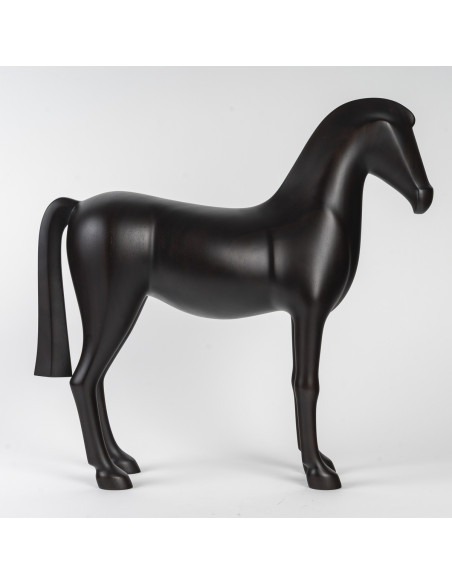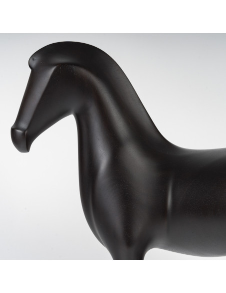 Sculpture Arion Cheval en acajou massif ébénisé sculpté à la main représentant Arion, cheval légendaire aux lignes martiales et à la puissance sereine