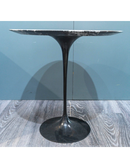 Eero SAARINEN (1910-1961), Edition Knoll : Guéridon en marbre circulaire noir veiné beige et blanc ,Pied aluminium recouvert de Rilsan noir