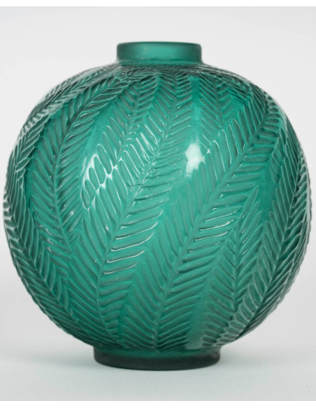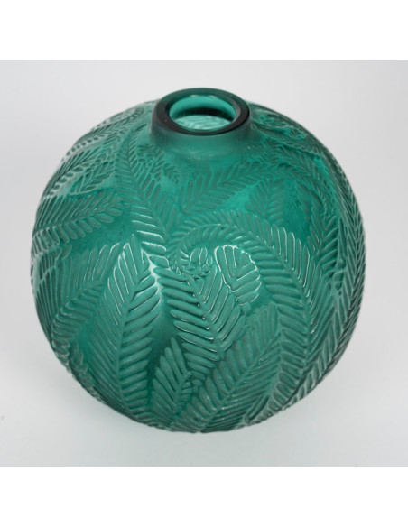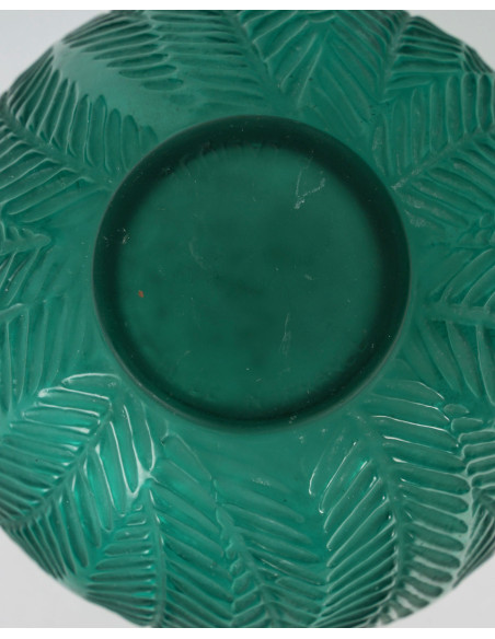 Vase « Palmes » Verre moulé pressé et teinté vert
