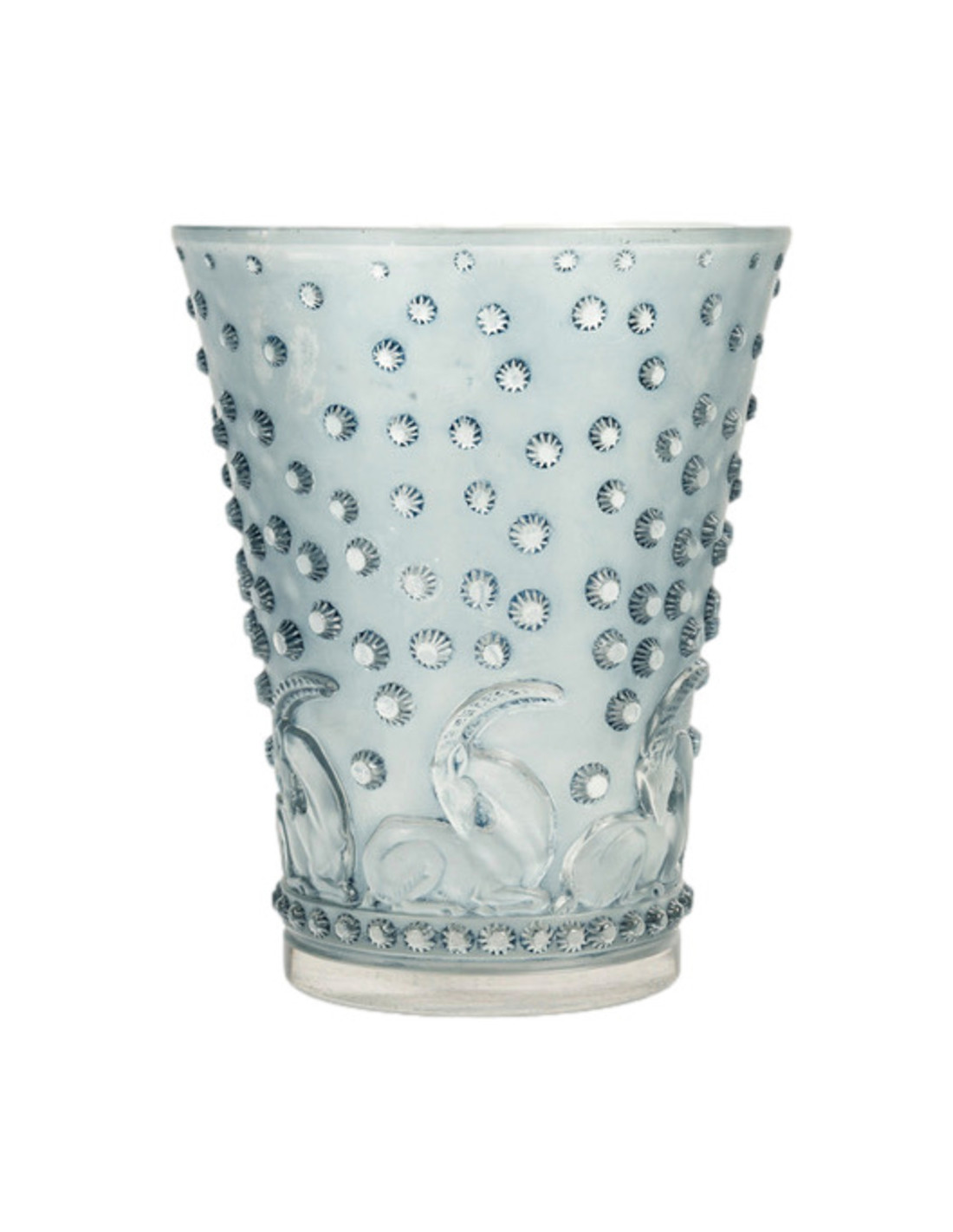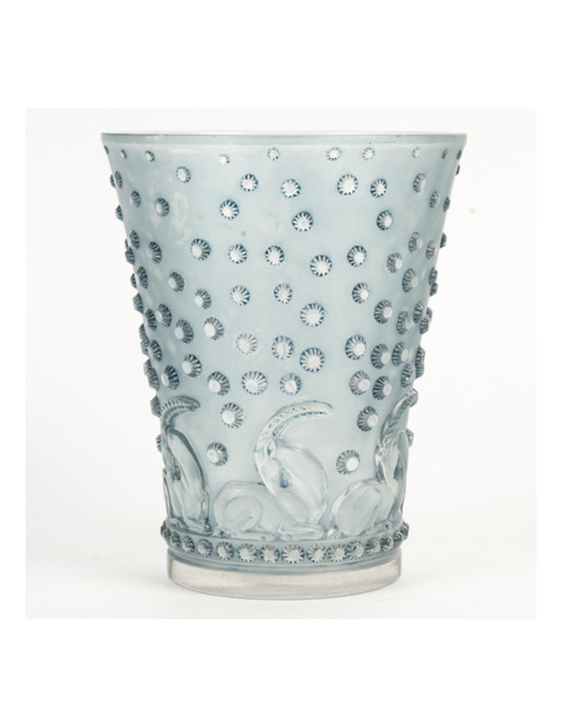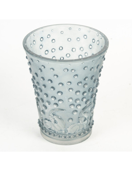 Vase "ajaccio" modèle créé en 1938 en verre blanc moulé pressé et patiné bleu signé sous la base R. Lalique .