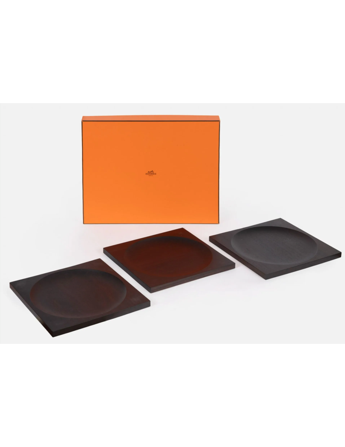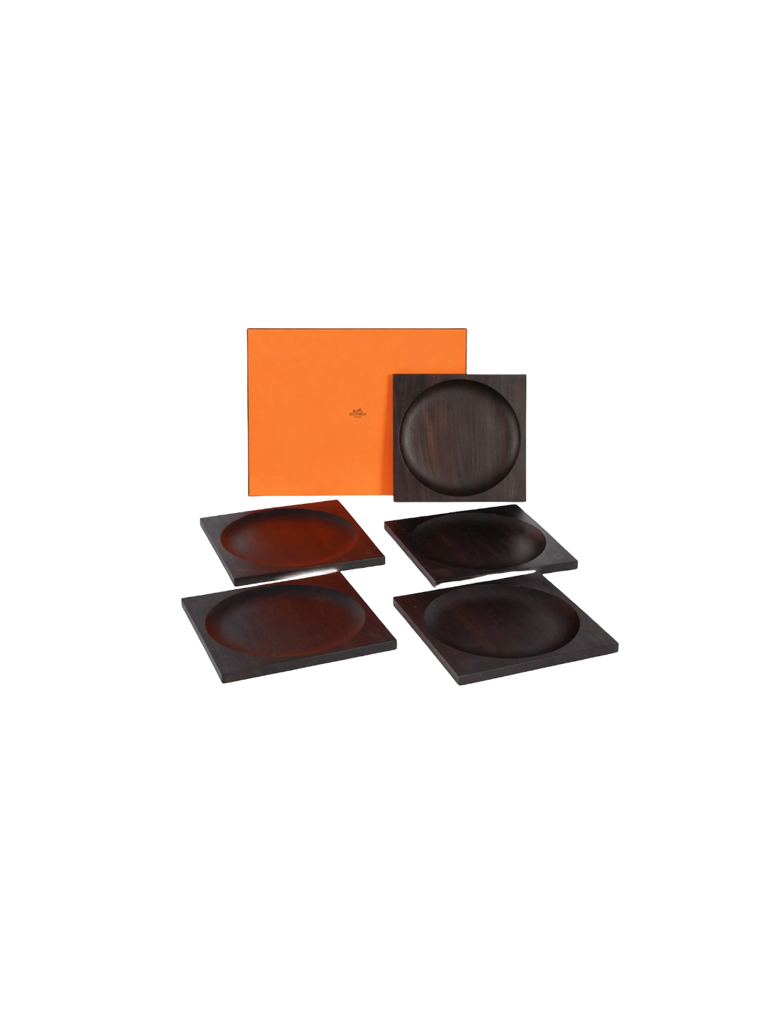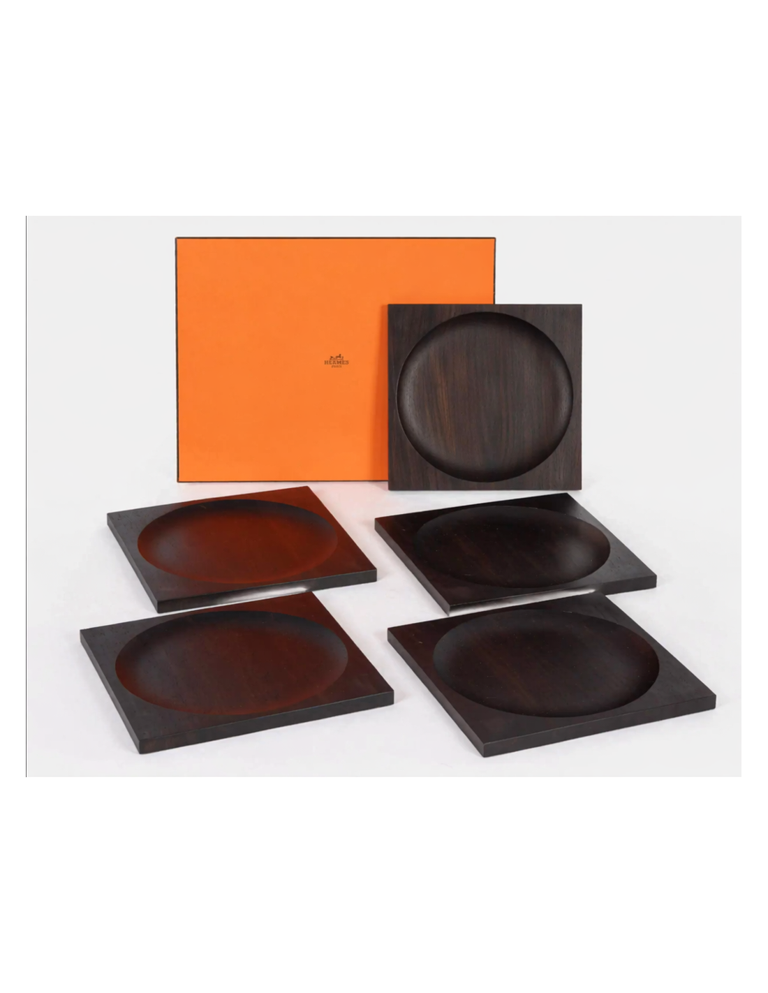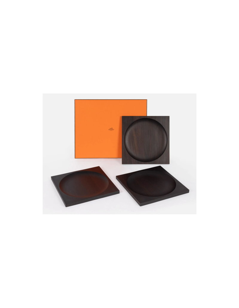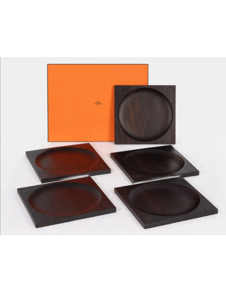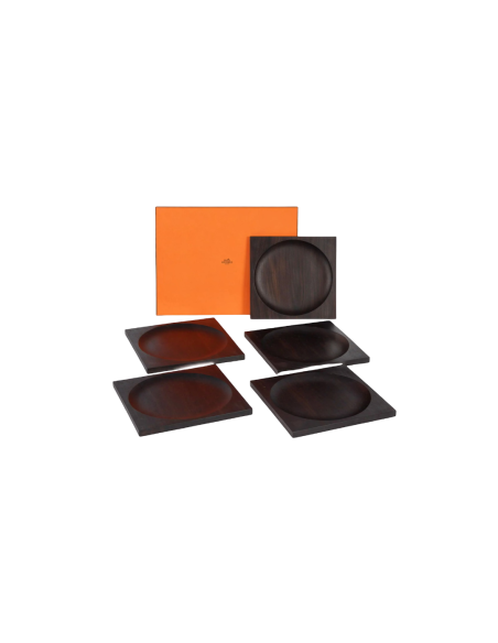 HERMES 5 plateaux assiettes de presentation en ébène de forme carrée,