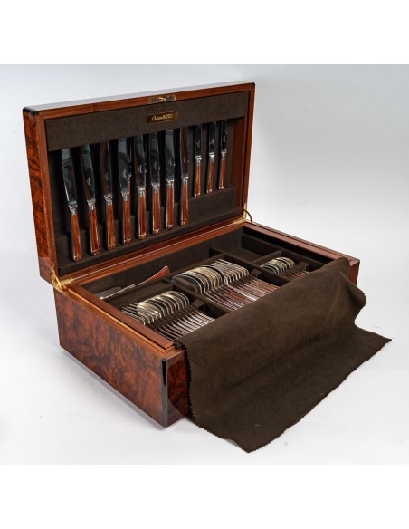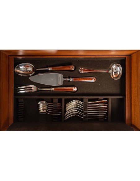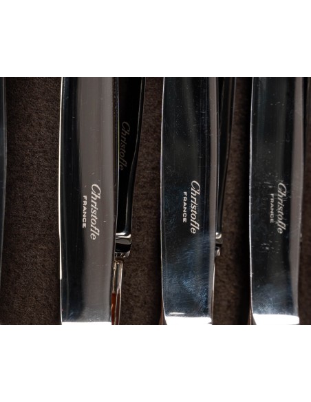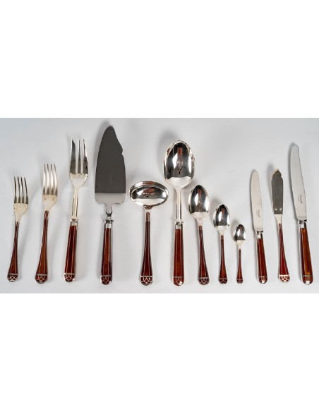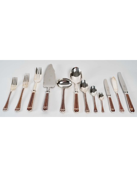 -Ménagère modèle TALISMAN en métal argenté et laque de Chine composée de :