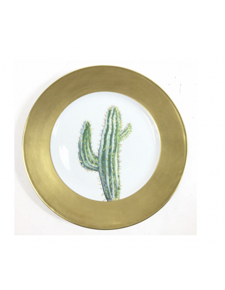 Daum et Limoges. Porcelaine, décor "Cactus" Épreuves en porcelaine émaillée polychrome et dorées à l’or fin.
