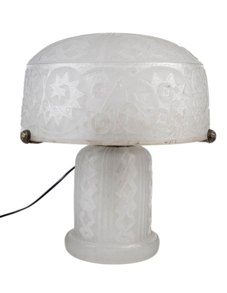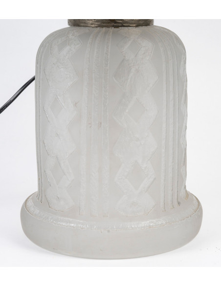 Lampe de table, verre incolore à décor dégagé à l'acide de motifs géométriques stylisés.
