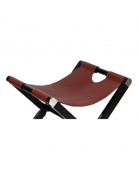 De forme X en érable ébénisé, métal chromé et cuir taurillon Clémence rouge H.