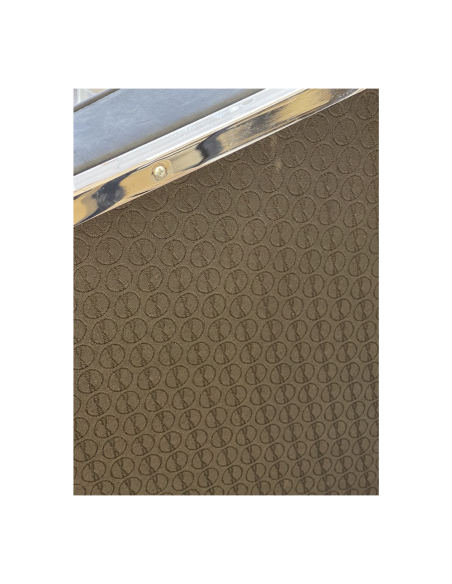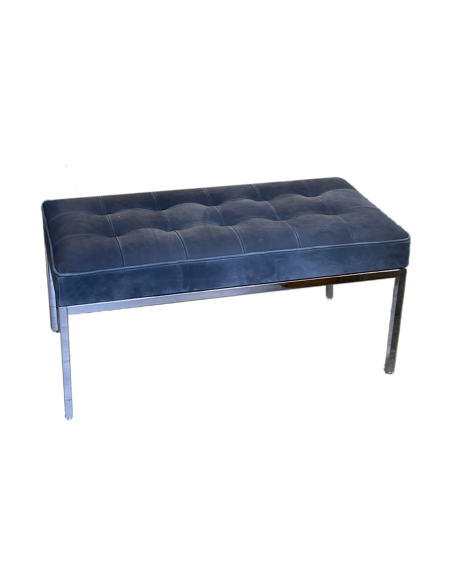 Les pieds sont en acier à section carrée, soudés et finition chrome poli brillant avec une assise constituée d'un capitonnage de carrés de cuir.