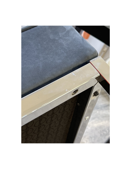 Structure: cadre métallique apparent et pieds acier à section carrée, soudés, finition chrome poli brillant.