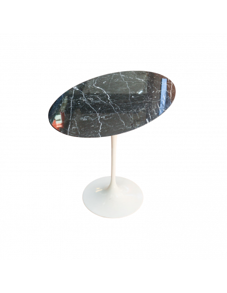 Eero SAARINEN (1910-1961), Edition Knoll Guéridon ovale en marbre maroquina noir pied aluminium et Rilsan blanc