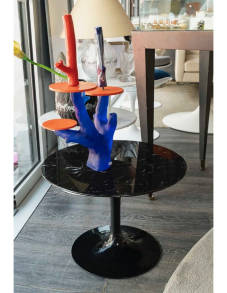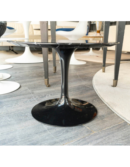 Eero SAARINEN (1910-1961), Edition Knoll : Guéridon en marbre circulaire noir » MARQUINA" ,Pied aluminium recouvert de Rilsan noir