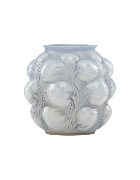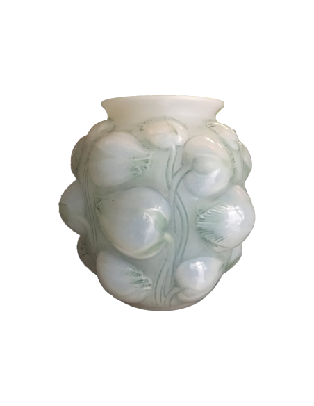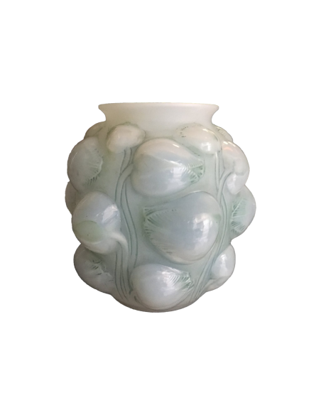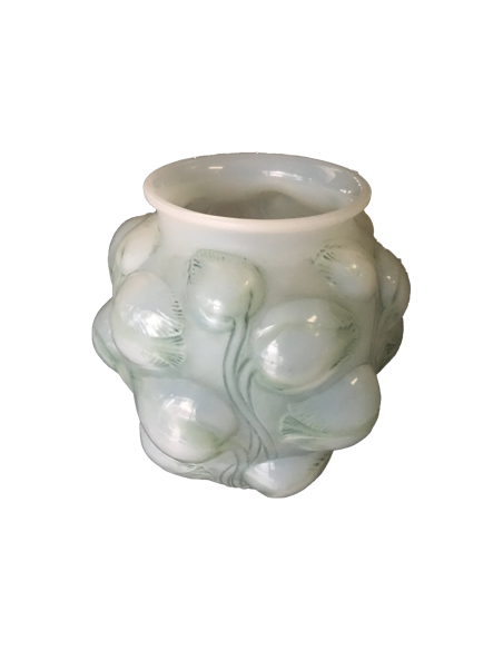 Vase "Tulipes" (1927). Épreuve en verre blanc soufflé moulé patiné opalescent avec sa trace de patine d'origine.