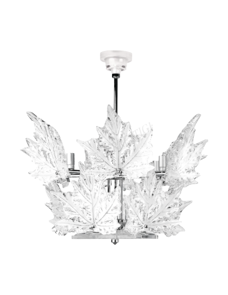 LALIQUE, lustre modèle "Champs-Elysées" en cristal moulé représentant des feuilles de platane.