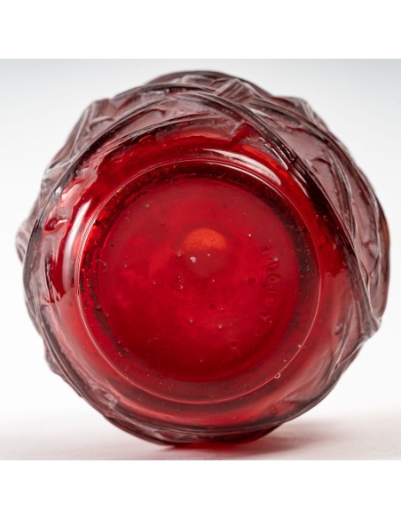 Épreuve en verre opalescent soufflé-mouléteinté rouge (réf. Marcilhac 946 page 427).