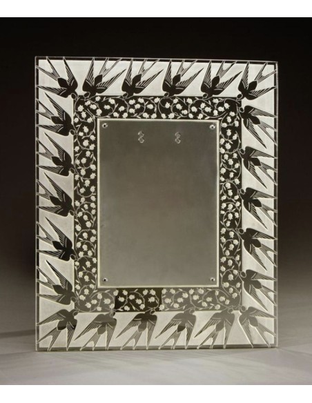 Cadre de forme rectangulaire aux " Muguet et Hirondelles " en verre blanc moulé-pressé à décor gravé au jet de sable.